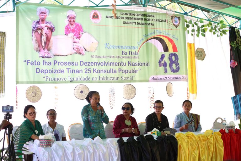 IX Governu Konstitusionál, liuhusi Ministériu Solidariedade Sosiál no Inkluzaun (MSSI), hamutuk ho Komisaun C no F Parlamentu Nasionál, komemora Loron Nasionál Feto Timor-Leste ba dala 48 (03 Novembru 1976 – 03 Novembru 2024), iha Postu Administrativu Maubara, Munisípiu Likisá, Sábadu (09/11/2024) ho tema ““Feto Iha Prosesu Dezenvolvimentu Nasionál Depoizde Tinan 25 Konsulta Populár”, ho sub tema “Promove Igualdade no Inkluzaun Sosiál”.