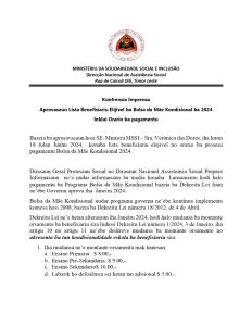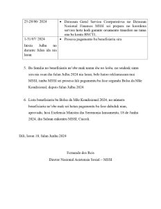 Konferénsia Imprensa Lansamentu Ba Pagamentu Programa Bolsa da Mãe Kondisionál Faze Dahuluk Ba Tinan 2024, iha salaun enkontru MSSI, Kaikoli, Díli 18 Juñu 2024